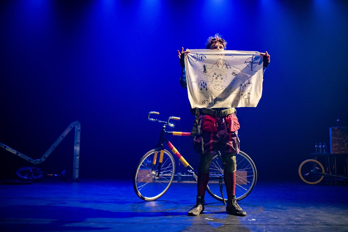 A apresentação propõe uma narrativa contada pelo corpo, onde objetos comuns do cotidiano, como garrafas, cadeiras e bicicletas, se transformam em obstáculos e passagens metafóricas. O público é convidado a acompanhar a trajetória do personagem, que decide enfrentar seus próprios limites e desafios em busca de um momento de conquista e superação.