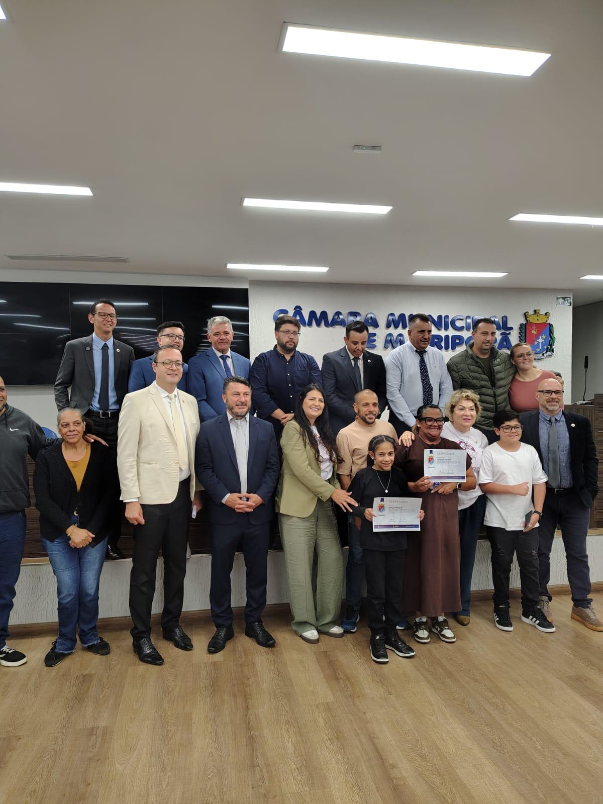 A proposta de reconhecimento partiu do vereador Renato Luis Fontes Cardoso, que entregou a honraria durante a sessão.