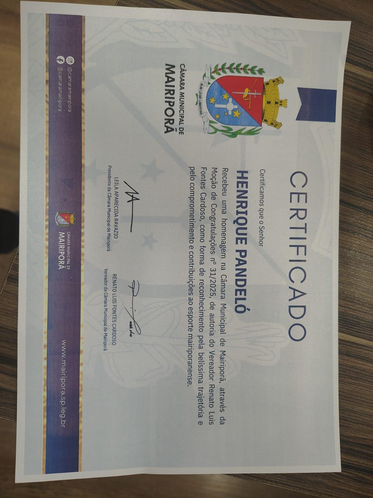 A Câmara Municipal de Mairiporã realizou uma homenagem ao corredor Henrique Pandeló, em reconhecimento ao seu desempenho esportivo e contribuições para o esporte no município. A solenidade ocorreu no plenário da casa legislativa e contou com a entrega de um diploma de honra ao mérito.