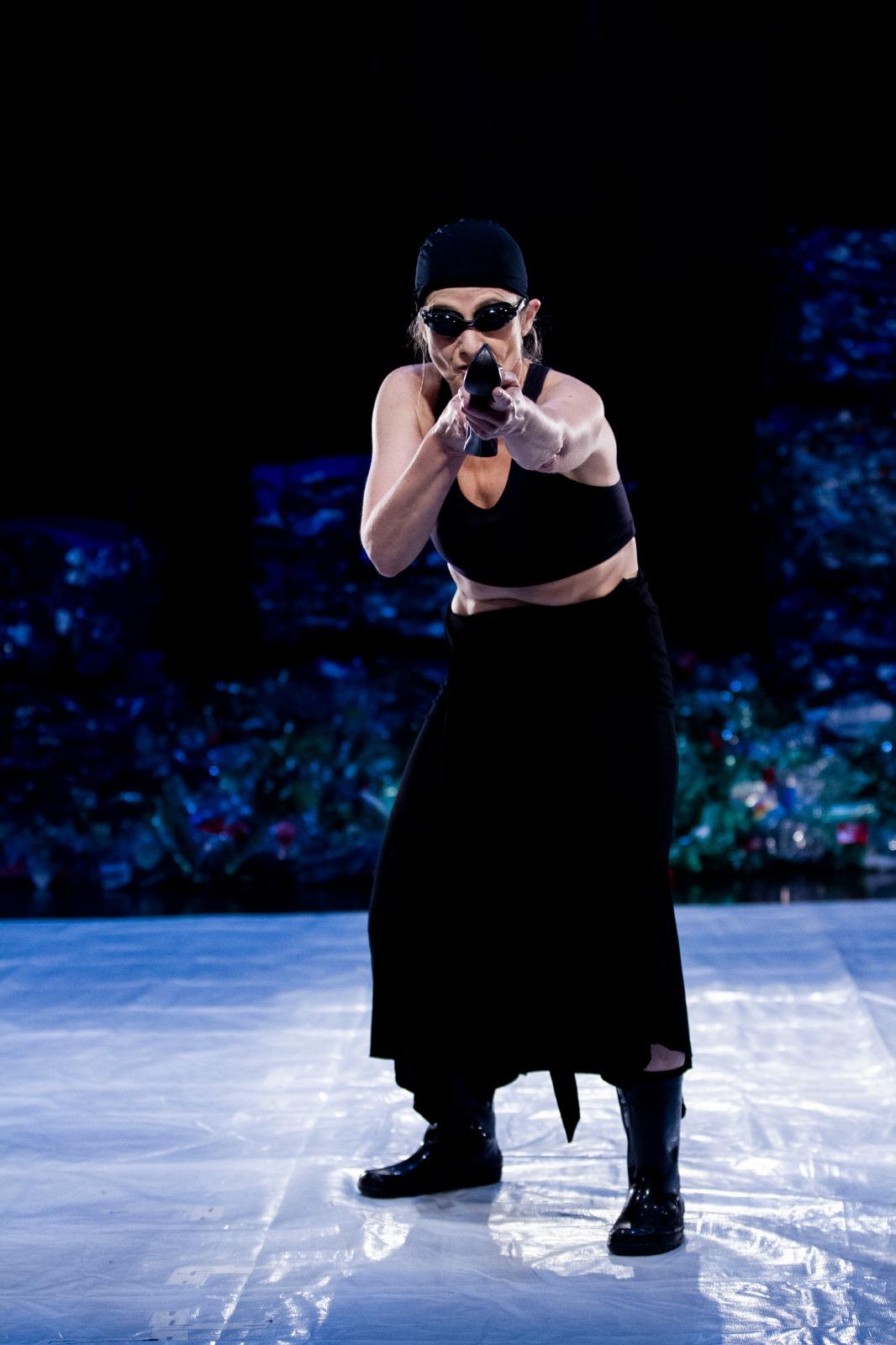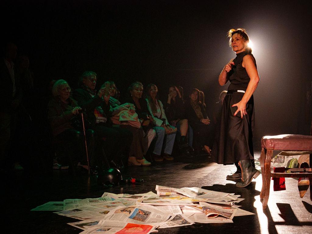 No palco, a atriz Flávia Bertinelli utiliza mascaramentos como dispositivo cênico para representar as diferentes vozes da autora, travando diálogos entre a criadora e suas personagens. A encenação, resultado de cinco anos de pesquisa, confere múltiplas representatividades ao monólogo, expandindo as possibilidades narrativas do texto.
